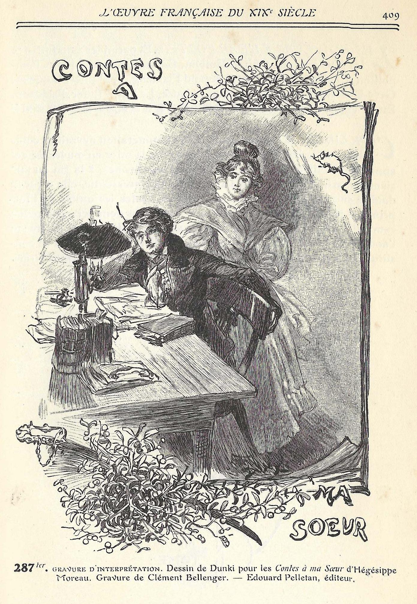 J’utilise pour base les textes obtenus sur le site — désormais inaccessible (2025-10-23) — de la bibliothèque municipale de Lisieux qui présente Hégésippe Moreau et quelques uns de ses contes avec des textes établis d’après l’édition de la Bibliothèque du bibliophile parue à Lyon en 1920 chez H. Lardanchet. Il s’agit des cinq premiers contes, du Gui de chêne jusqu’au Neveu de la Fruitière, qui composent les Contes à ma Sœur. Je complète avec les contes donnés dans les Œuvres complètes, éditées par R. Vallery-Radot, publiées à Paris par Alphonse Lemerre en 1890. J’en fait la transcription d’après un exemplaire de la bibliothèque de Lille 3 dont on verra ici la page de garde et ici la table des matières du 1er tome.